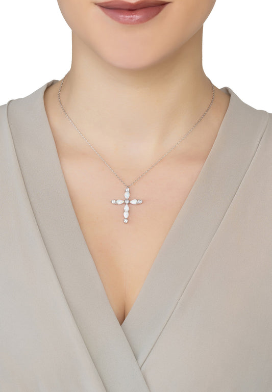 Opal and Sparkle Cross Pendant Necklace Silver - Timeless Faith and Modern Radiance
